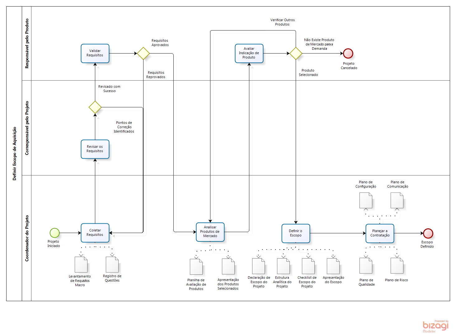 Entrada | Solicitação de projeto Termo de abertura Documento de levantamento de requisitos Produto selecionado |